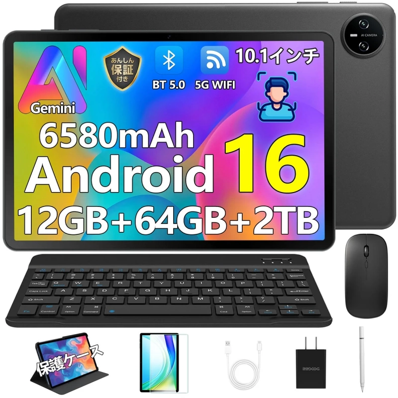 専用保護ケース&強化ガラスフィルム: 購入後すぐにタブレットを落下や傷から守ることができ、安心して使用できます。
