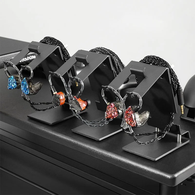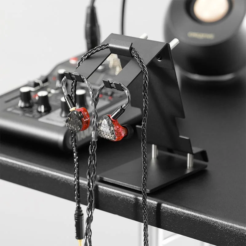 ユニットが大型化しがちなIEMの形状を考慮し、薄型かつ幅広のフック設計が採用されています。一般的なヘッドホンスタンドでは安定しにくいイヤホンも、本製品なら左右のユニットが回転することなく、常に理想的な角度で待機します。これにより、音楽制作やゲーム中など、使いたい瞬間に最短ルートで手に取れる、高いアクセス性を実現しています。