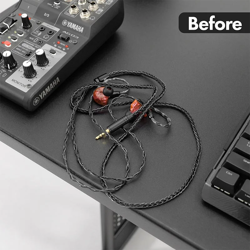 ▲Before: デスクに無造作に置かれたイヤホン