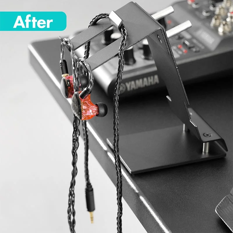 幅広い形状に対応するスリット: 一般的な形状のイヤホンにも幅広く対応するフック形状を採用しており、機材の種類を選ばず、あらゆる有線イヤホンに最適な「定位置」を提供します。